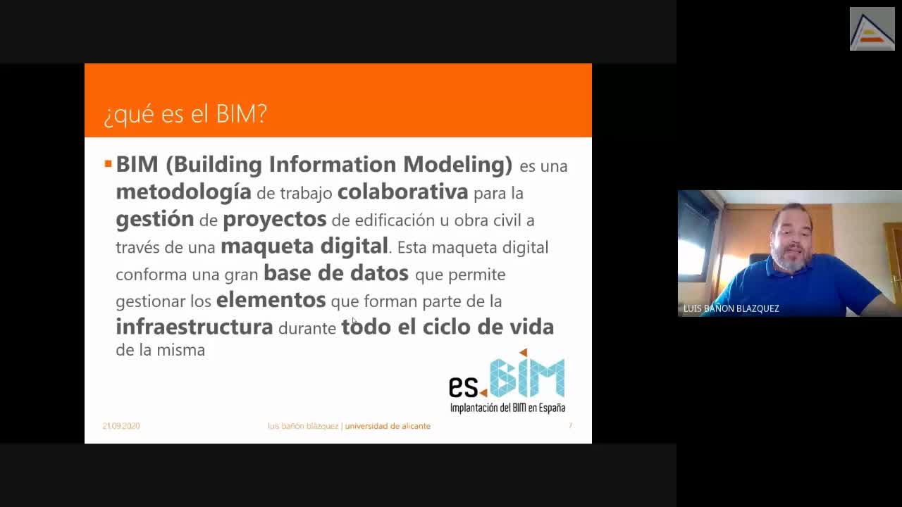 | Resumen | El video desarrolla los conceptos básicos de la metodología BIM (Building Information Modelling). Pertenece al Curso de Introducción al BIM Empresarial en Obras Públicas, impartido en septiembre de 2020 | ||