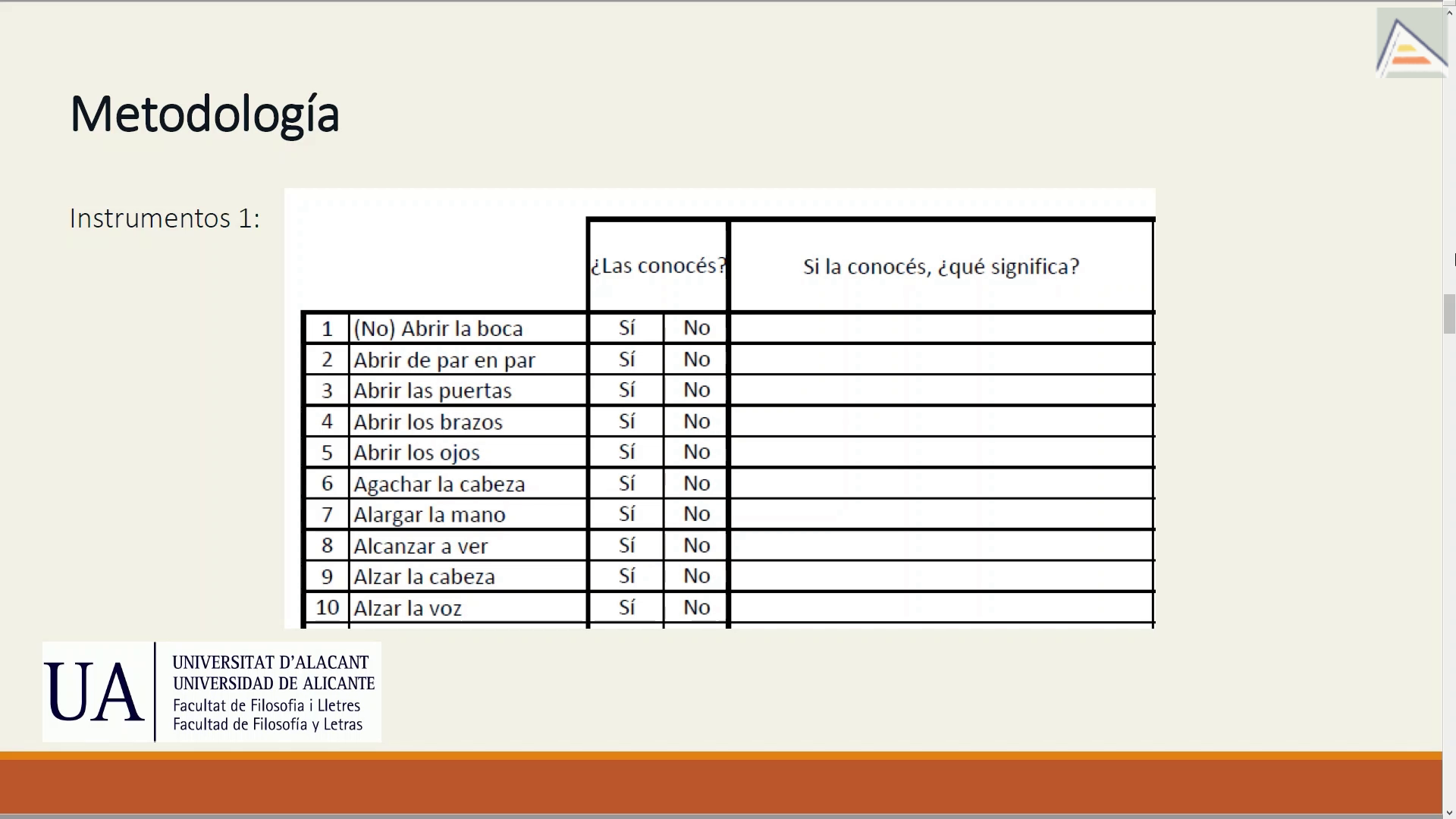 Para evaluar la competencia fraseológica de los estudiantes, se tomó como punto de partida las 350 UF más frecuentes según el grupo de investigación FRASYTRAM. Se hizo un vaciado de los diccionarios del español de Argentina para determinar en qué grado recogían las 350 UF más frecuentes. De las 350 UF más frecuentes, se seleccionaron las que no figuraban en los diccionarios del español de Argentina para crear dos instrumentos de medición |