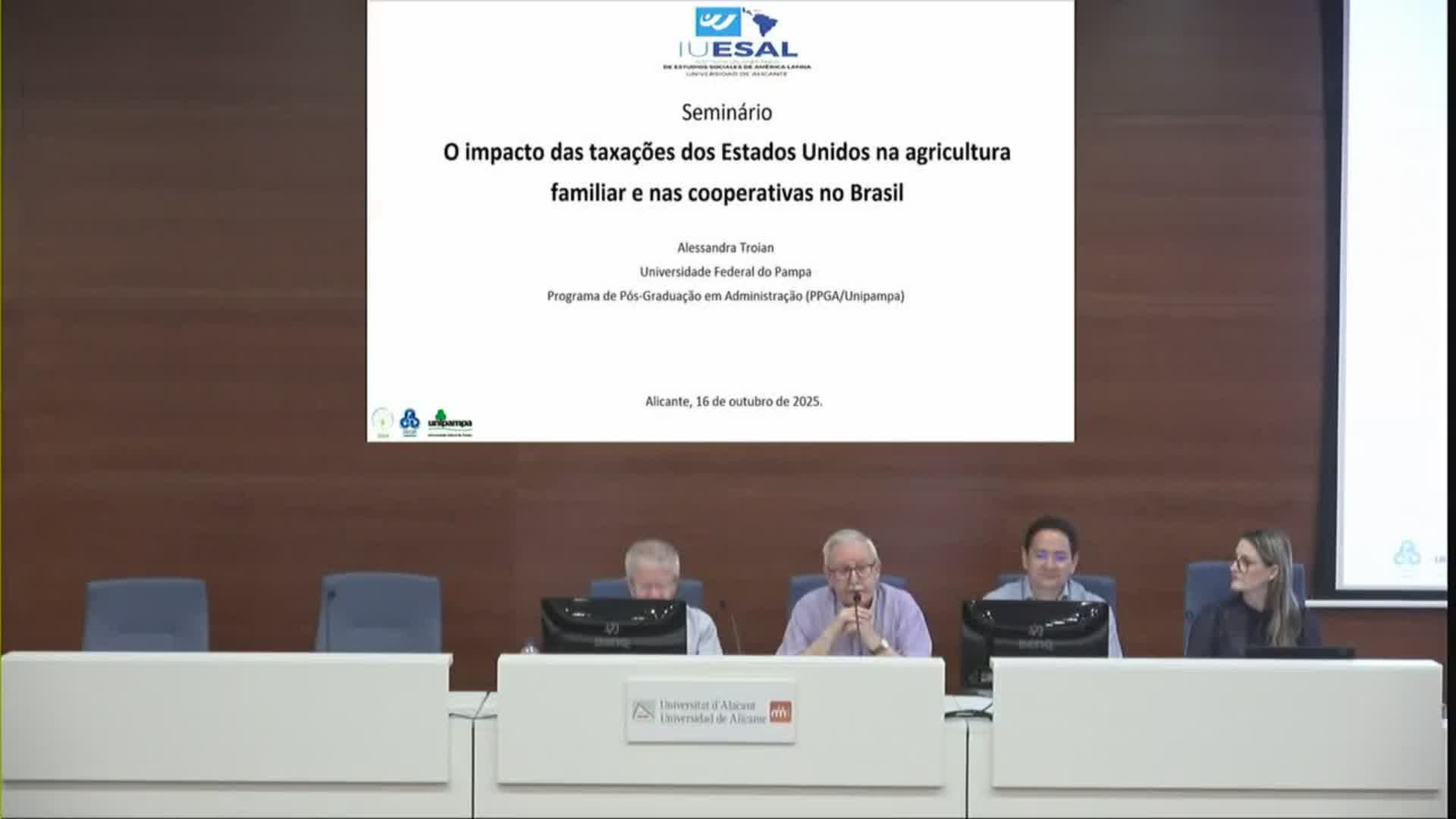 Resumen Seminario "O impacto da tarifa alfandegária dos EUA na agricultura familiar e nas cooperativas do Brasil", Seminario de investigación organizado por IUESAL UA